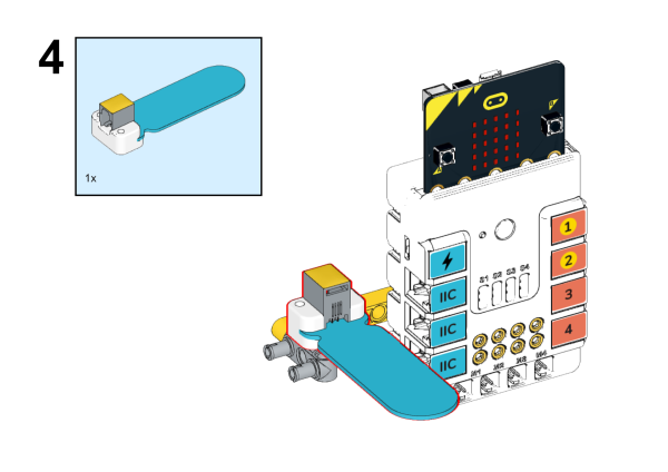 - Construye un dispositivo como indican las imágenes: No necesitamos más que la placa Micro:Bit y y Nezha